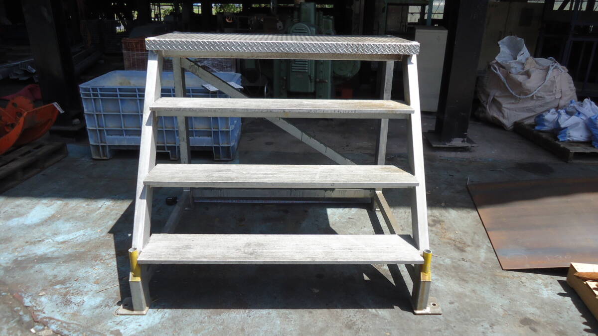 - 油谷 №4149 検品 足場 ステップ トラック荷台 階段 手摺 中二階 踊り場 プレハブ トラックスケール 鉄骨倉庫 工場 上り下り 昇降タラップ