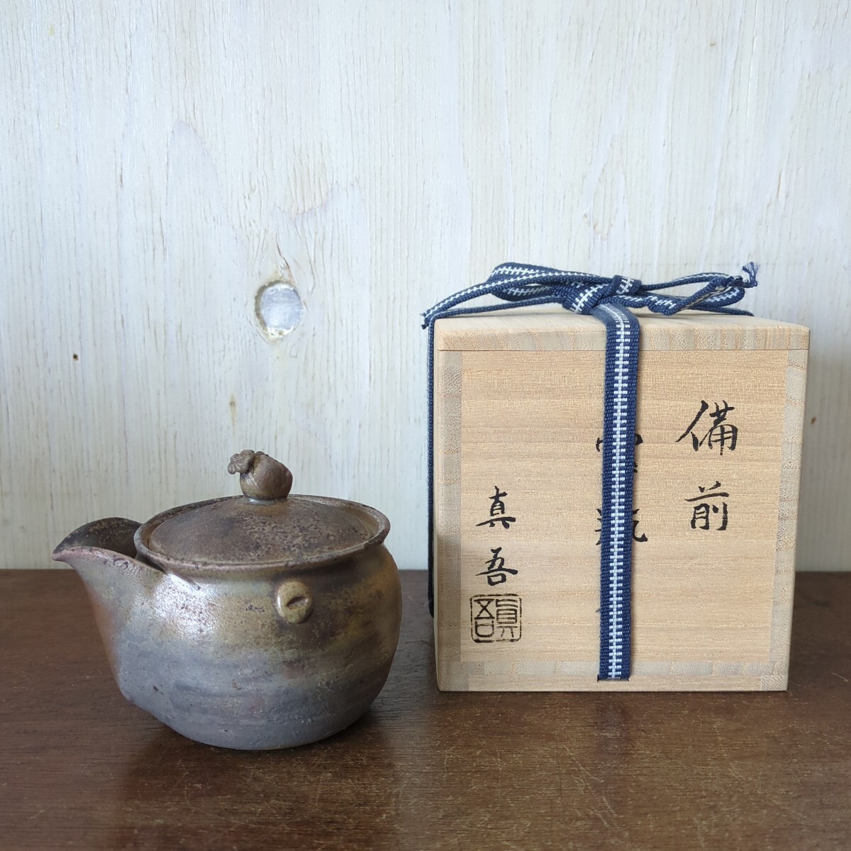 - 備前焼 小山真吾 柘榴 摘み 宝瓶 共箱 師 金重素山 父 小山一草 ザクロ 茶器 茶道具