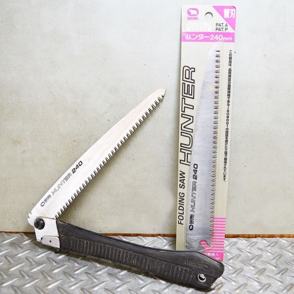 - 【新潟発】バクマ 替刃式折込鋸 ハンター 240mm 替え刃付 ノコギリ のこぎり 木工 大工 木 切断 カット DIY ハンドツール 中古 工具