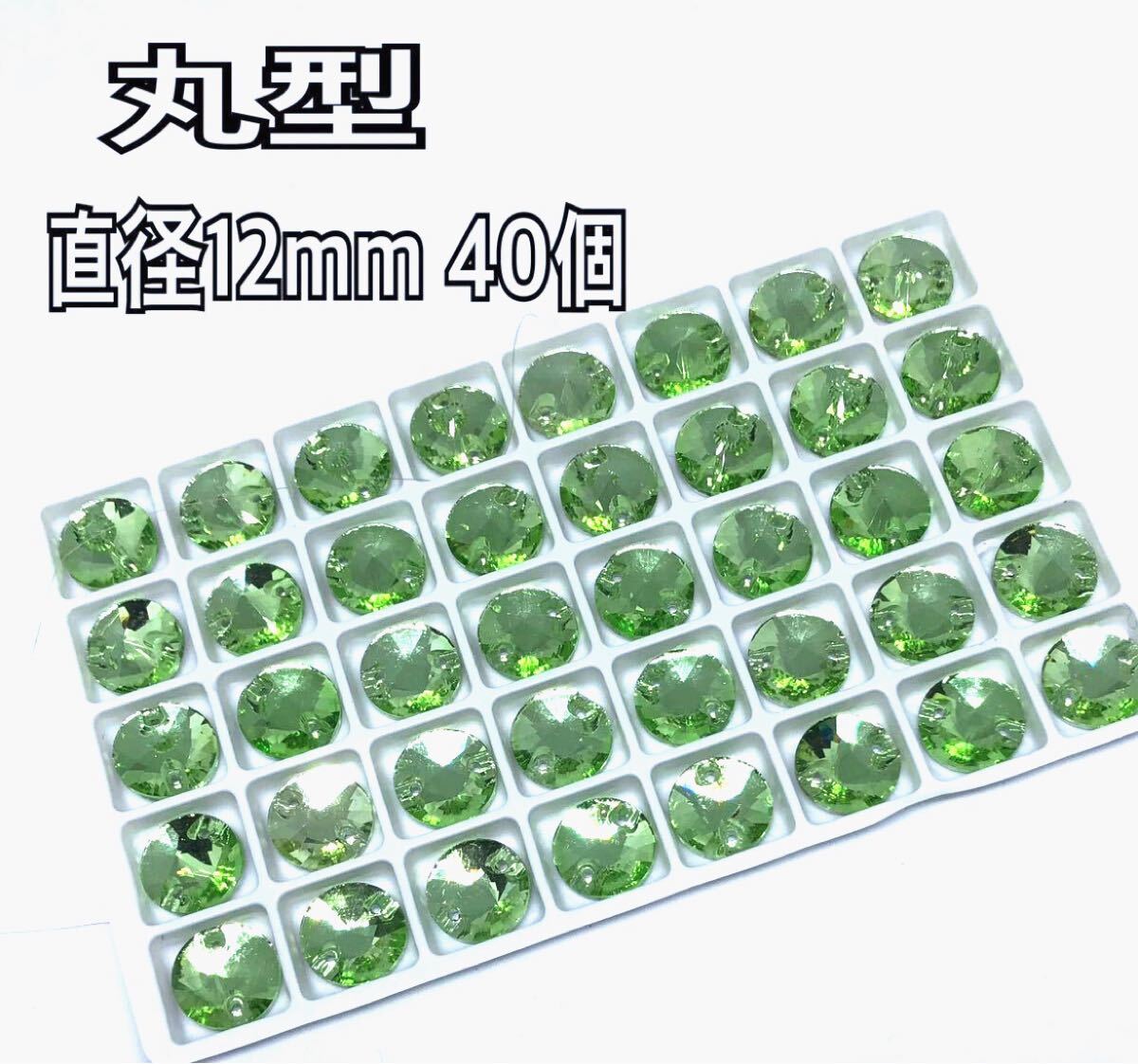 - 直径12mm 40個 丸型ガラスビジュー 高輝度 衣装装飾 レオタード 新体操 ソーオン グリーン