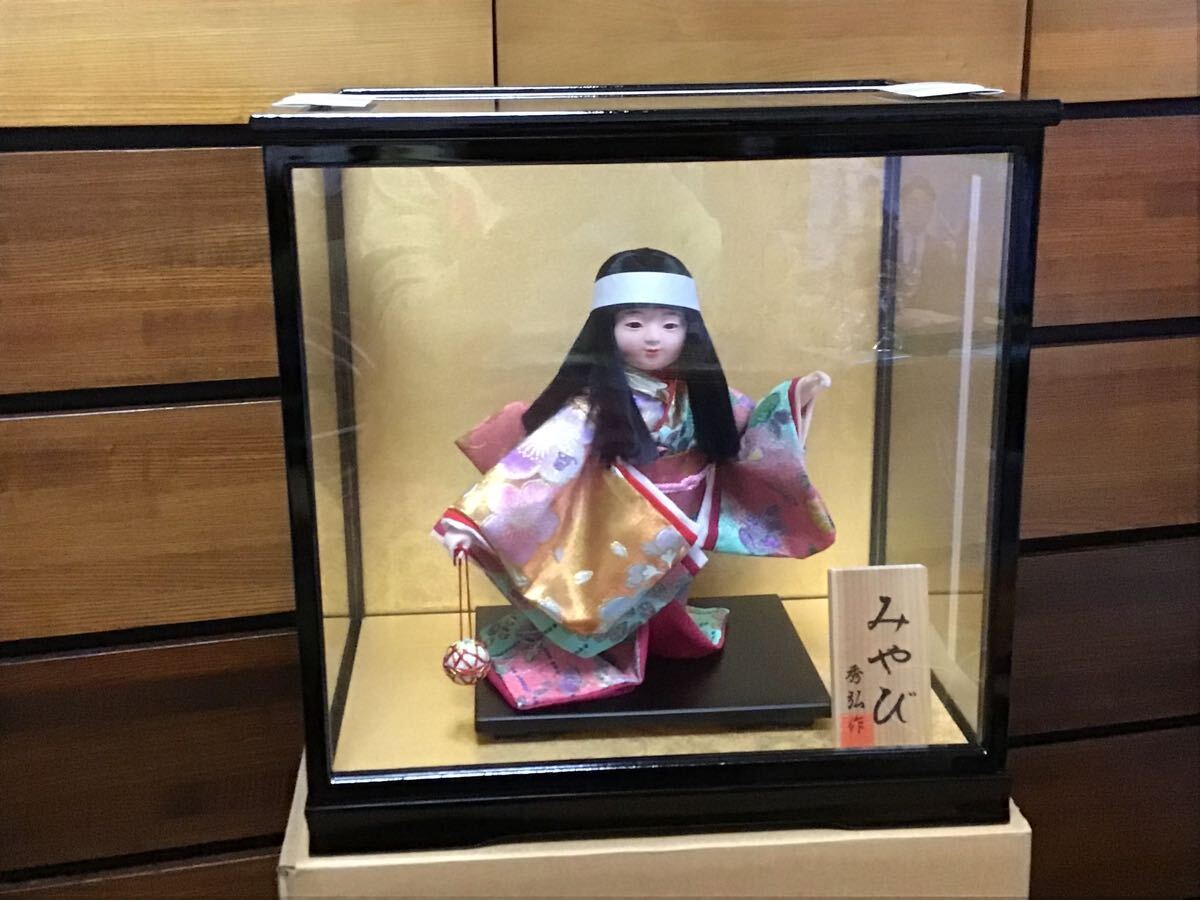 - 【新品】【未開封】 日本人形 【みやび】【秀松作】市松人形 ガラスケース入り 着物 置物 伝統工芸品 木目込人形