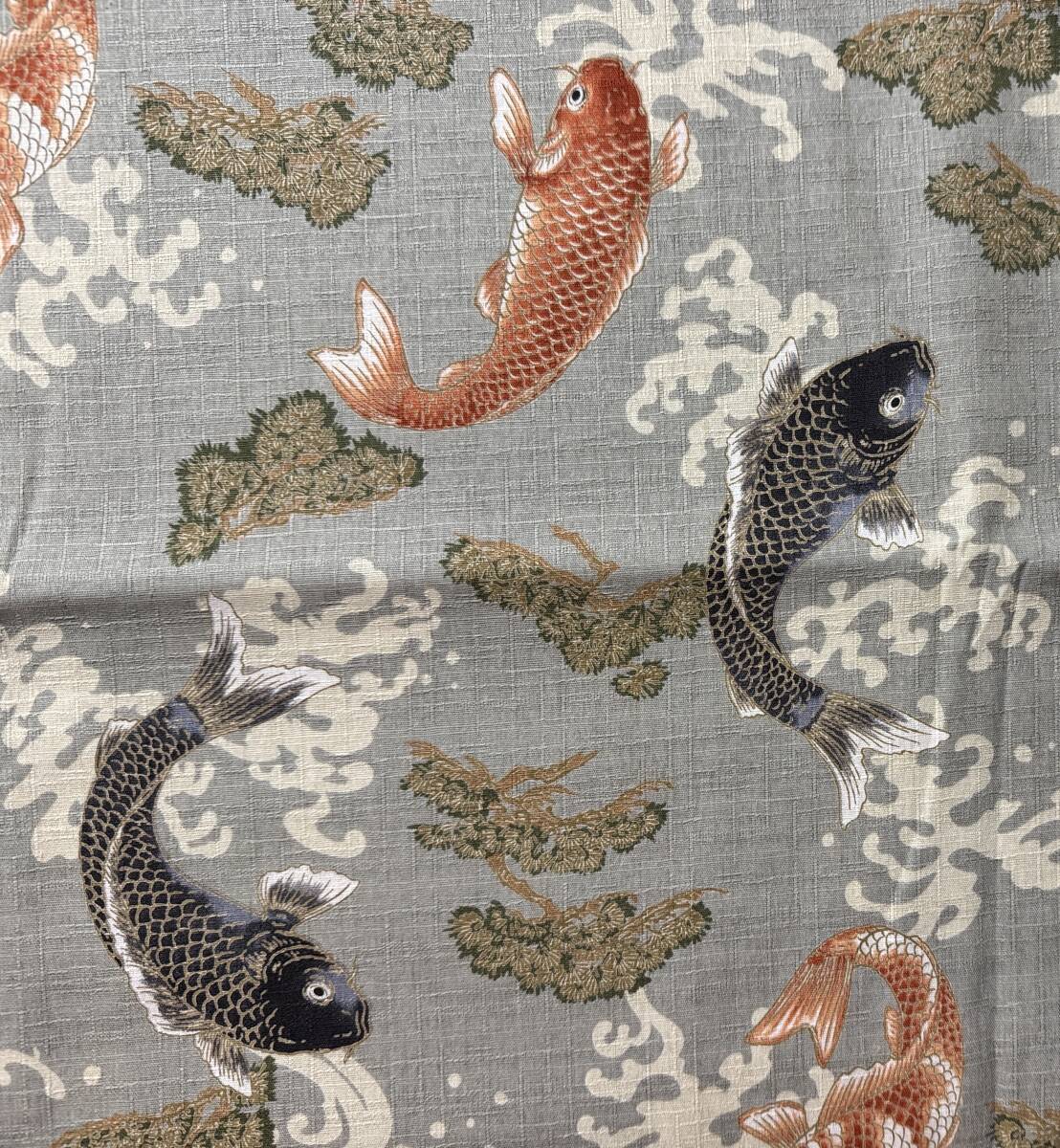 - 5m ドビー 110×500cm グレー 綿100% 鯉 日本製 錦鯉 / 生地 はぎれ サザンクロス WAGARA