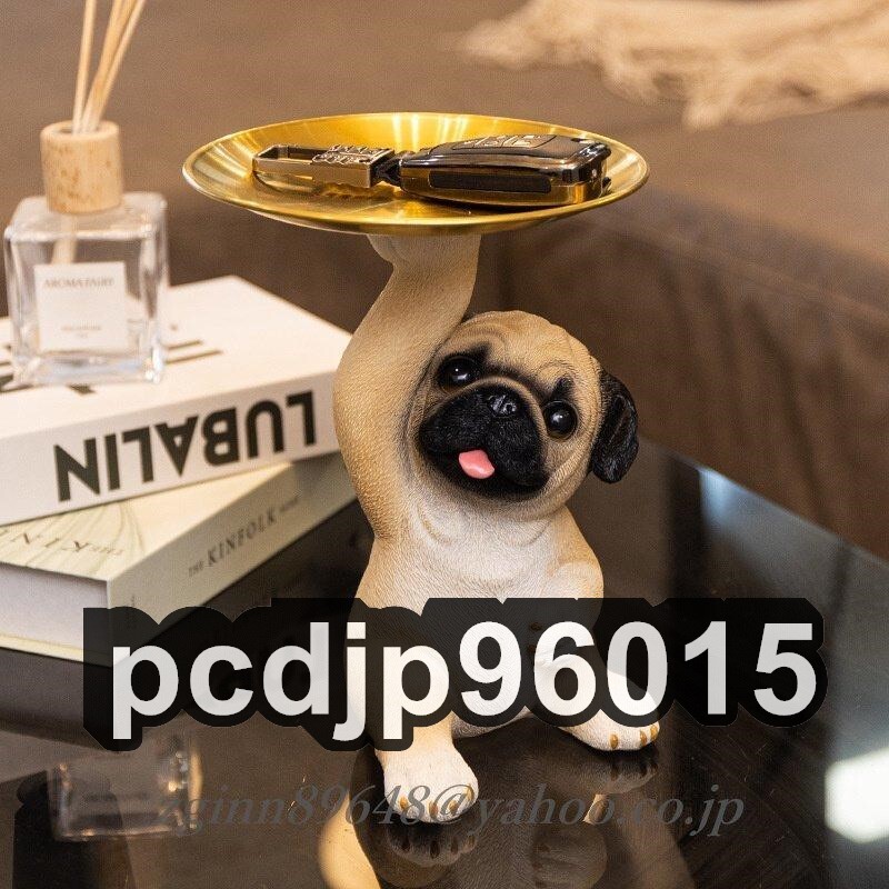 - パグ テーブルトレイ 小物置き 玄関やリビングに かわいい 犬 オブジェ 置物 雑貨 ドッグ アニマル 動物 アクセ収納 鍵置き 時計