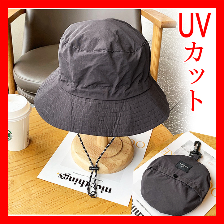 - サファリハットレディースUVカット メンズグレー撥水防水帽子 ぼうし アウトドア