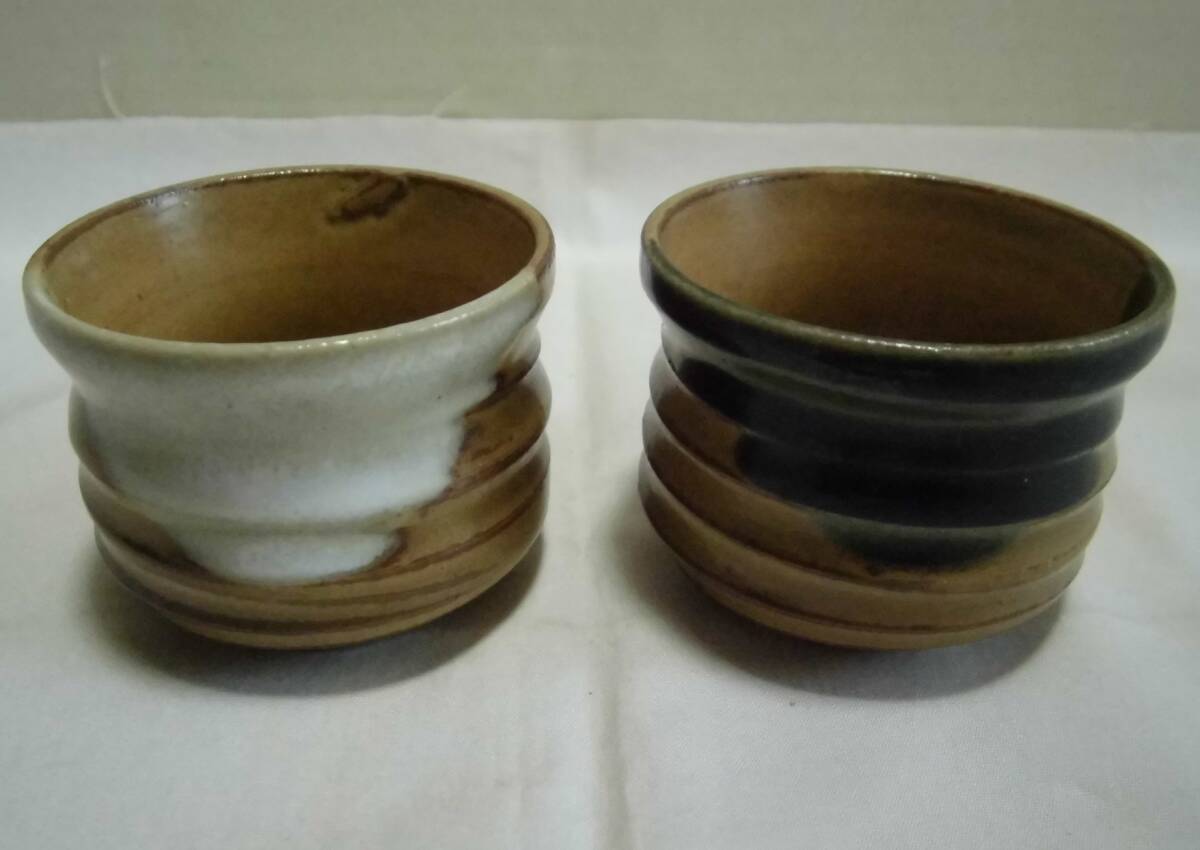 > 味わいある 古い ぐい呑み 2客 色違い お猪口 盃 杯 日本酒 酒器 工芸品 陶器 レトロ アンティーク