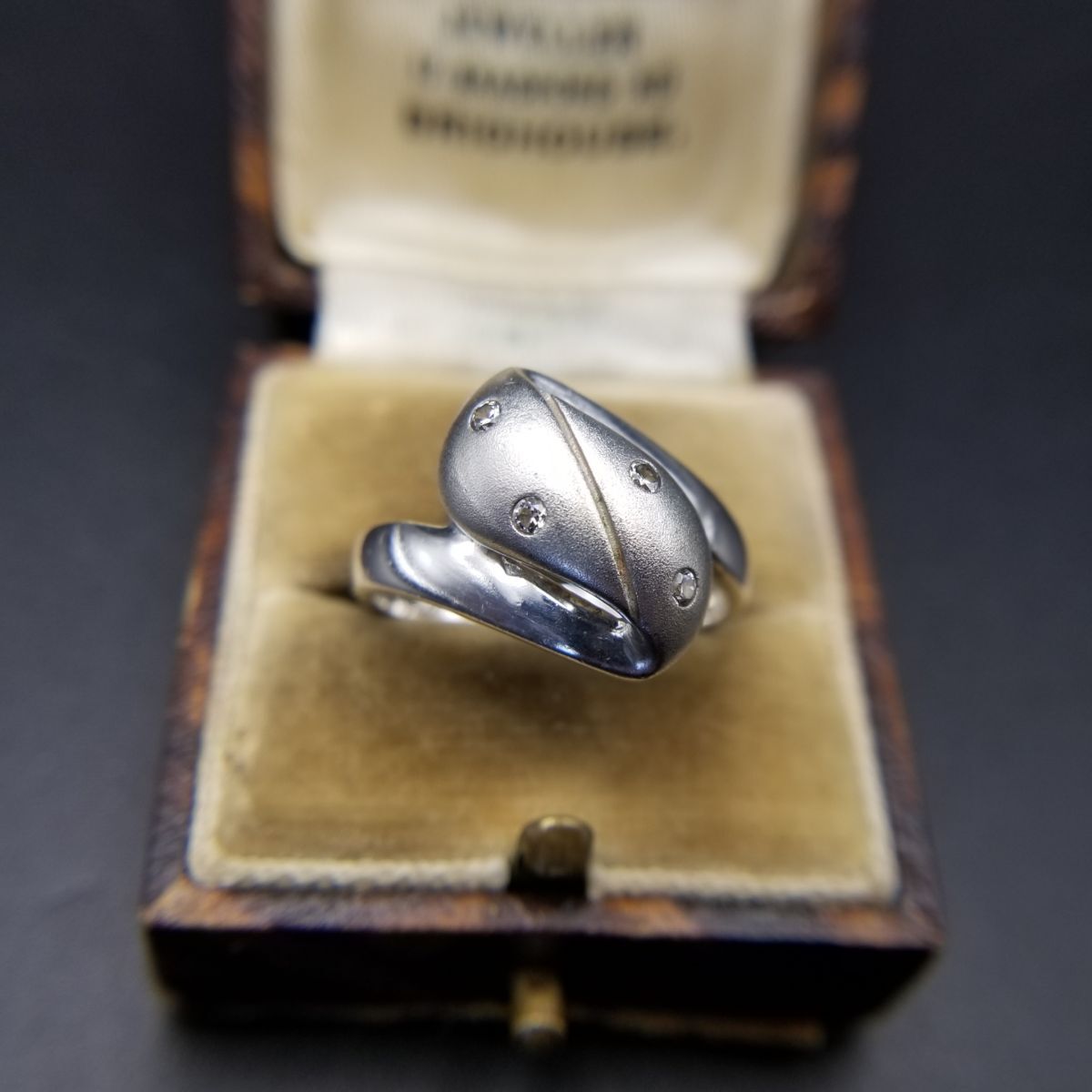 > KLAS ウェーブ リボン 925 シルバー ヴィンテージ リング 指輪 銀 モダニスト キュービックジルコニア 煌めき 上品 大きいサイズ
