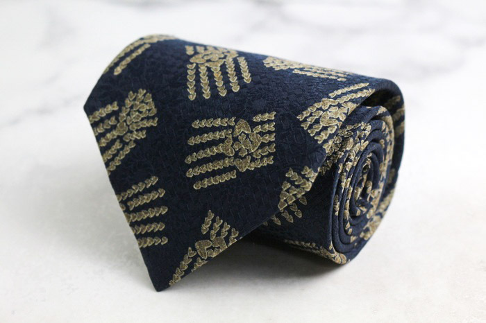 - イヴ・サンローラン ブランド ネクタイ YSL 総柄 パネル柄 シルク アメリカ製 PO メンズ ネイビー YVES SAINT LAURENT
