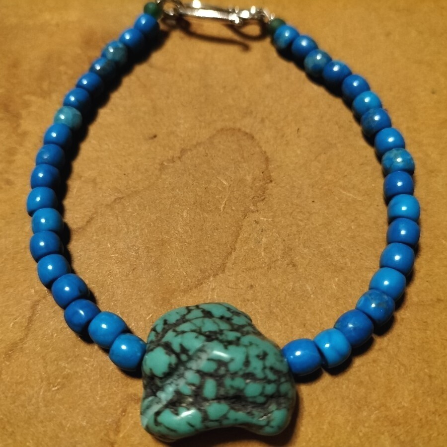 - ターコイズ ブレスレット ヴィンテージ インディアン US トルコ石 ナバホ ホピ ズニ 大粒 青緑 ビーズ 天然石 サントドミンゴ アメカジ