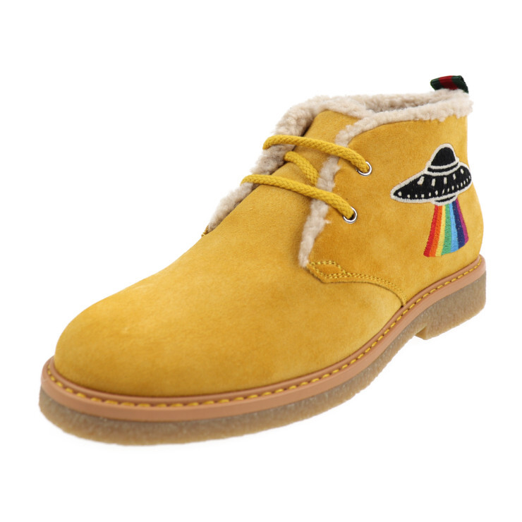 > 新品未使用展示品 GUCCI グッチ アングリーキャット 483457 32 ブーツ スウェード からし色 イエロー【本物保証】