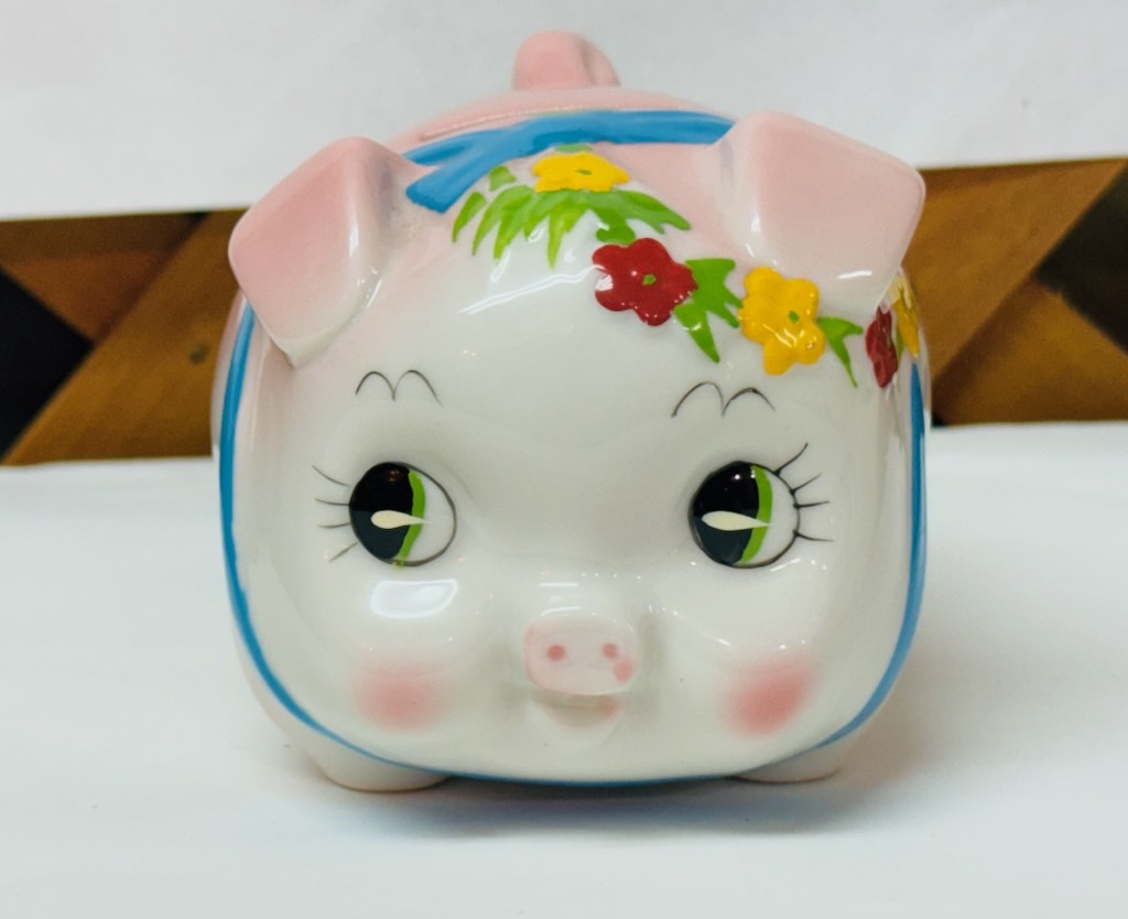 - レトロ 加藤工芸 KATO KOGEI 陶器製 豚の貯金箱 ピギーバンク ピンク アンティーク ブタ 置物 綺麗です