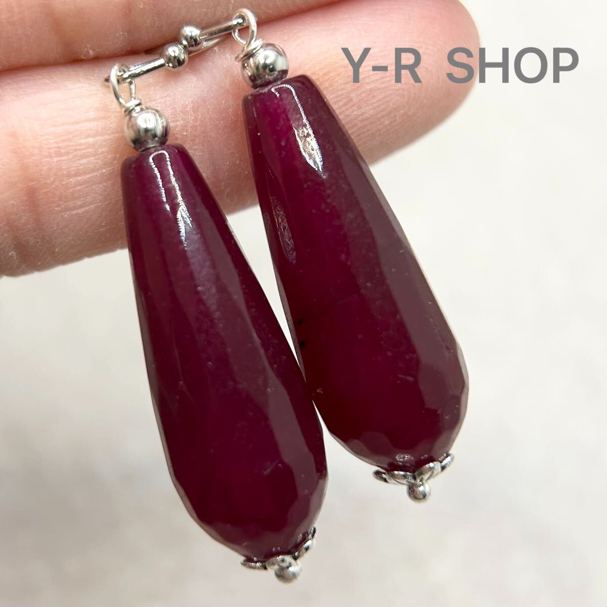 - 天然石★雫型ワインカラールビーのアンティーク調ゆらゆらピアス★レディースシルバーアクセサリーカラーストーンエスニックアジアン雑貨