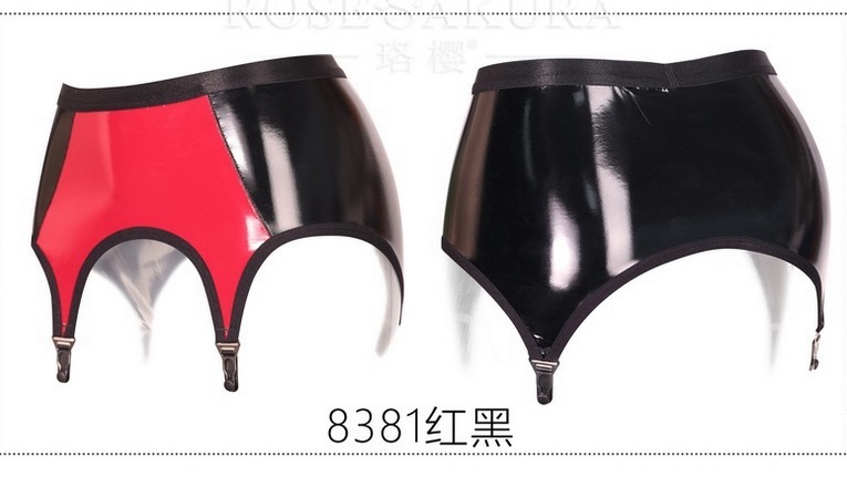 - 送料無料・新作 ROSESAKURA・8381 RED・BLACK PUエナメル光沢クラシック/レトロデザイン4バックル ガーターベルト