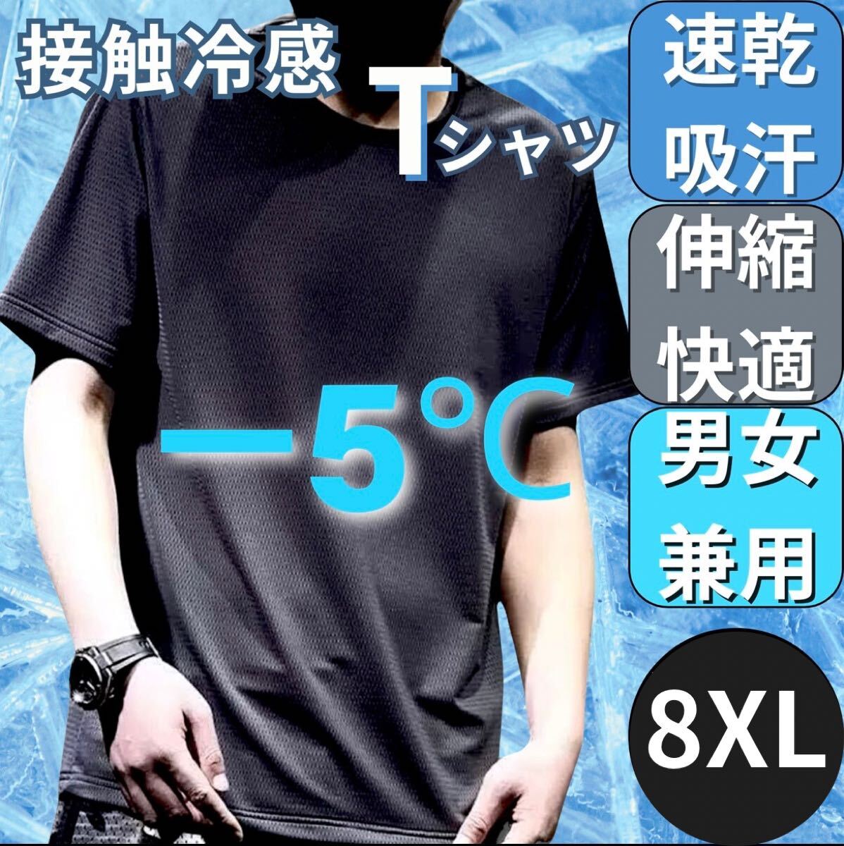 - Tシャツ 8XL 無地 半袖 インナー スポーツ ブラック 黒 メンズ トップス 熱中症対策 吸汗速乾