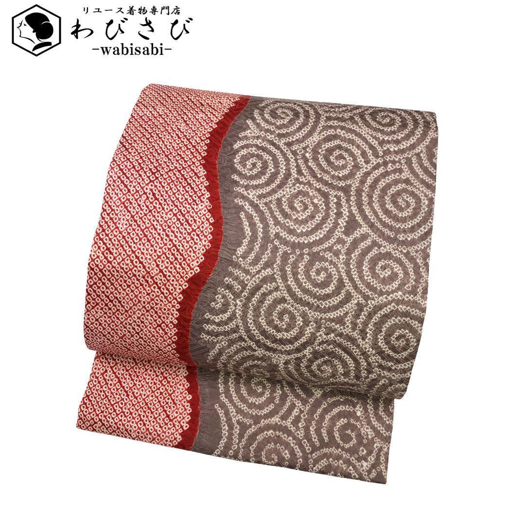 > 名古屋帯 絞り 渦巻模様 染分 鼠色 O-5064 着物 きもの kimono 和服 和装 中古 リサイクル着物 【送料無料】