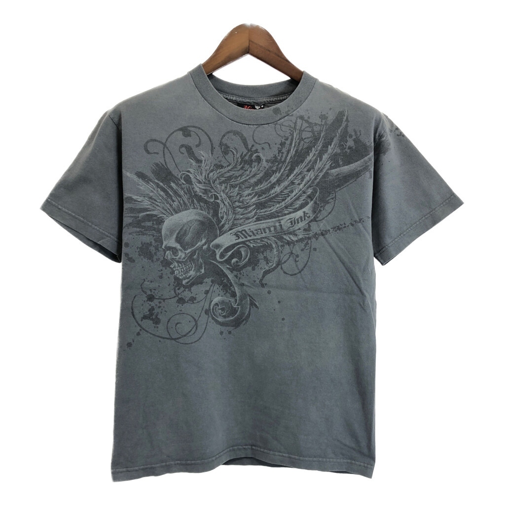 > 00年代 Miami Jnk スカル ガイコツ ドクロ 半袖Tシャツ Y2K グレー(メンズ M相当)中古 古着 U2108