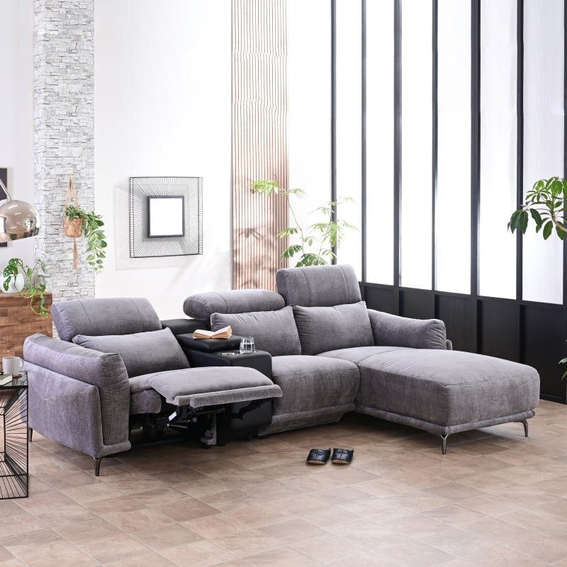 - 新品 電動リクライニングカウチソファー USBポート付き 収納付きコンソールBOX グレー 3人掛け 3P ファブリック リビング:ST10-18L01