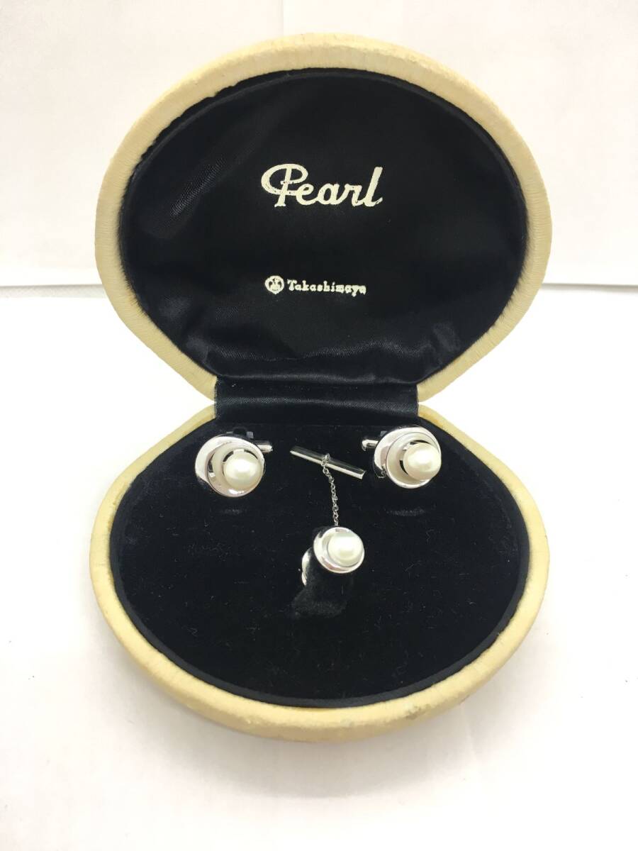 - Pearl パール 真珠 付 カフス タイピン セット アクセサリー