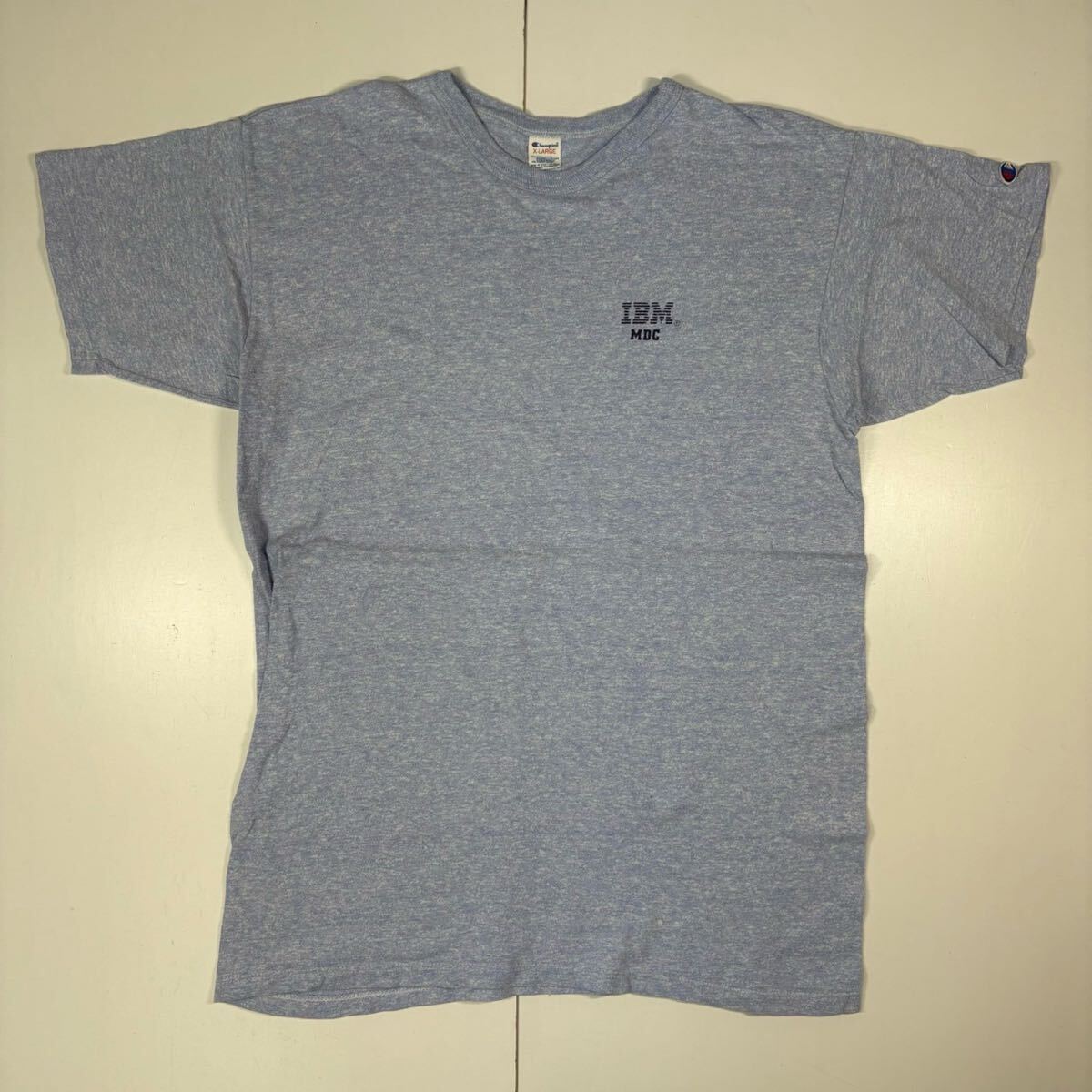 - 【XL】80s Vintage CHAMPION IBM Print Tee Blue 80年代 ビンテージ チャンピオン プリント 半袖 Tシャツ 青杢 トリコタグ USA製 T1208