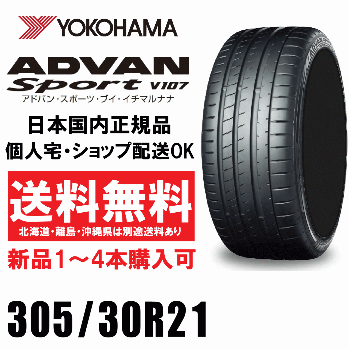 - 送料無料 1本価格 1~4本購入可 ヨコハマタイヤ アドバンスポーツ V107 305/30R21 104Y XL 個人宅ショップ配送OK ADVAN Sport R7547
