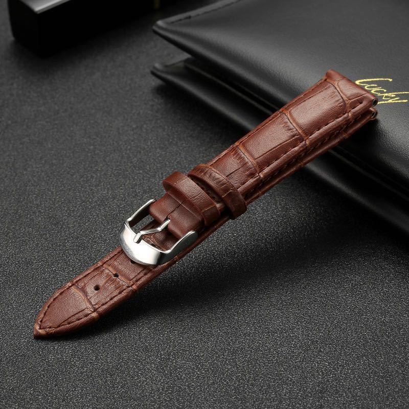 - 時計バンド 革ベルト ラグ幅20mm バネ棒付き レザーベルト 時計ベルト クロコ型押し 替えベルト ブラウン