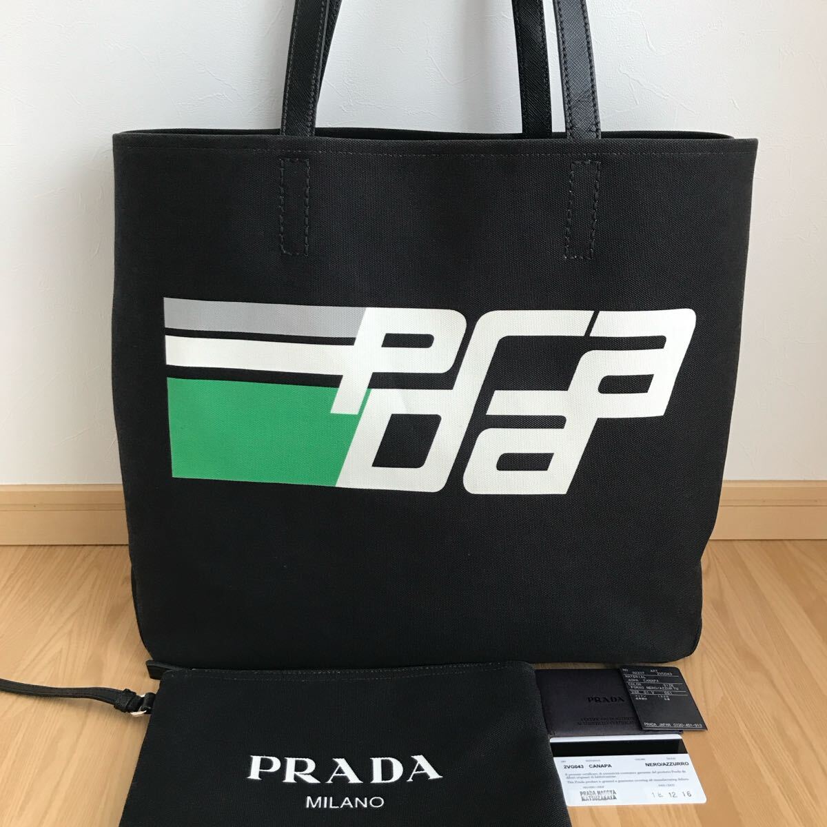 - 美品 PRADA プラダ トートバッグ キャンバス レザー ブラック バッグ 2VG043 メンズ