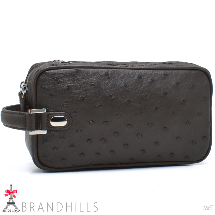 - オーストリッチ セカンドバッグ メンズ ブラウン Wファスナー コンパクト 紳士用 新品