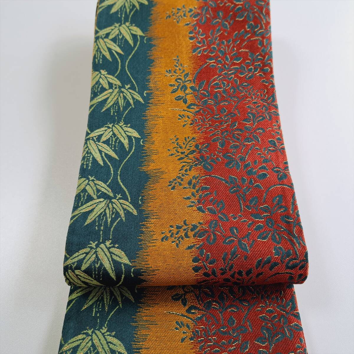 - 即決■着物の越田■幅16.5長さ438 化繊 半幅帯 リバーシブル 夏物 浴衣 笹 植物 変わり結びにも ■へ15J06