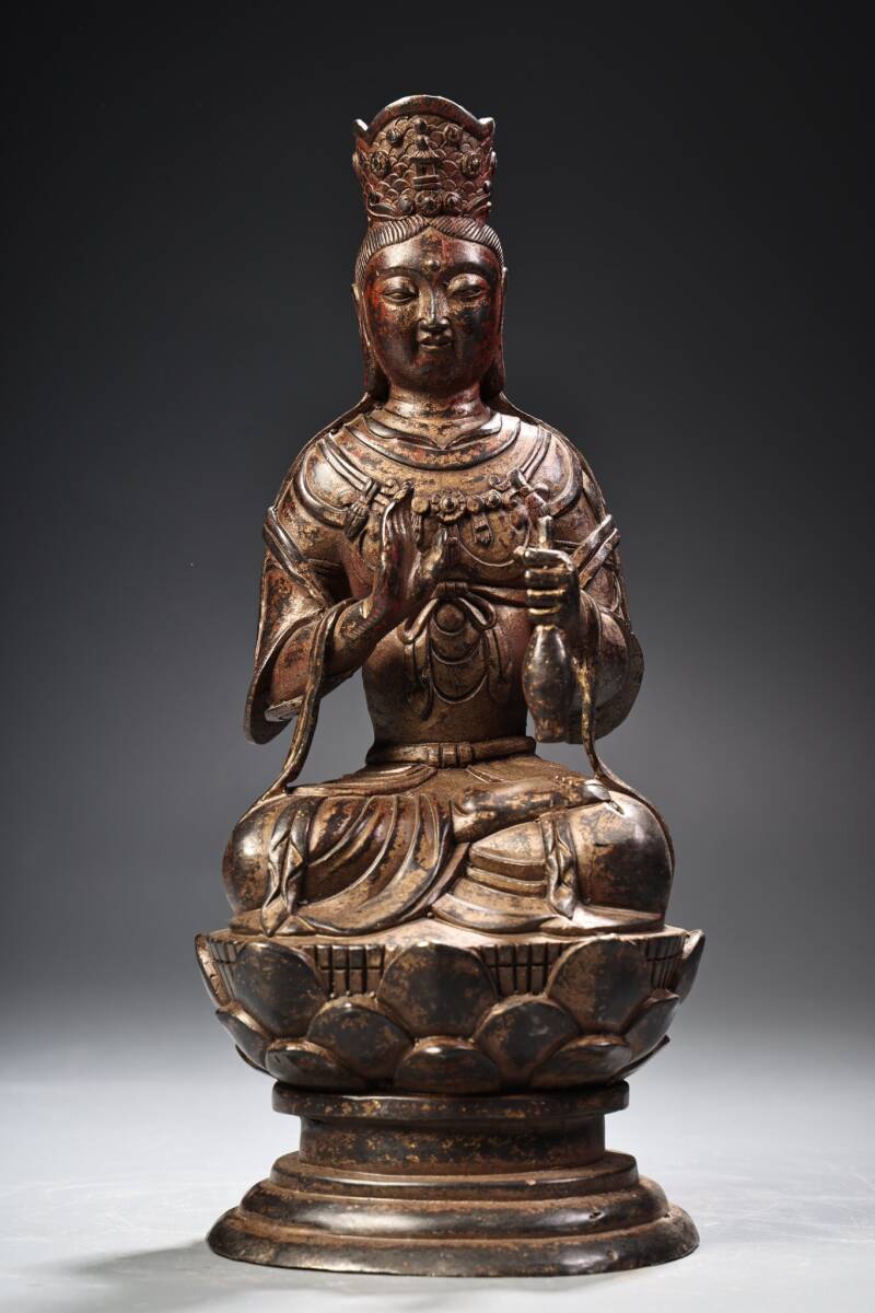 - 『館蔵珍品 銅製 泥金 寶瓶觀音像』仏教古美術 供養品 貴重物品 収蔵品 中国古美術