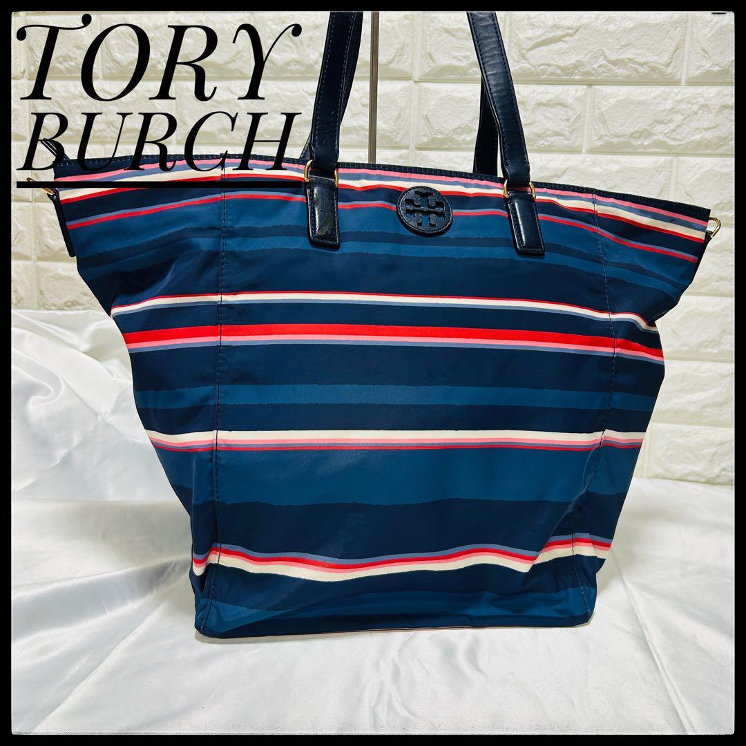 - TORY BURCH トリーバーチ ショルダーバッグ トートバッグ ボーダー 青 ネイビー ブラック 黒 バッグ マザーズバッグ ボーダー カラフル
