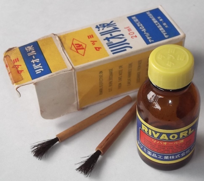 - 昭和 レトロ 薬 ガラス ビン 空き箱 リバオール液 タツミ薬品 キズ薬 消毒薬 パッケージ ラベル 製薬会社 アクリノール溶液