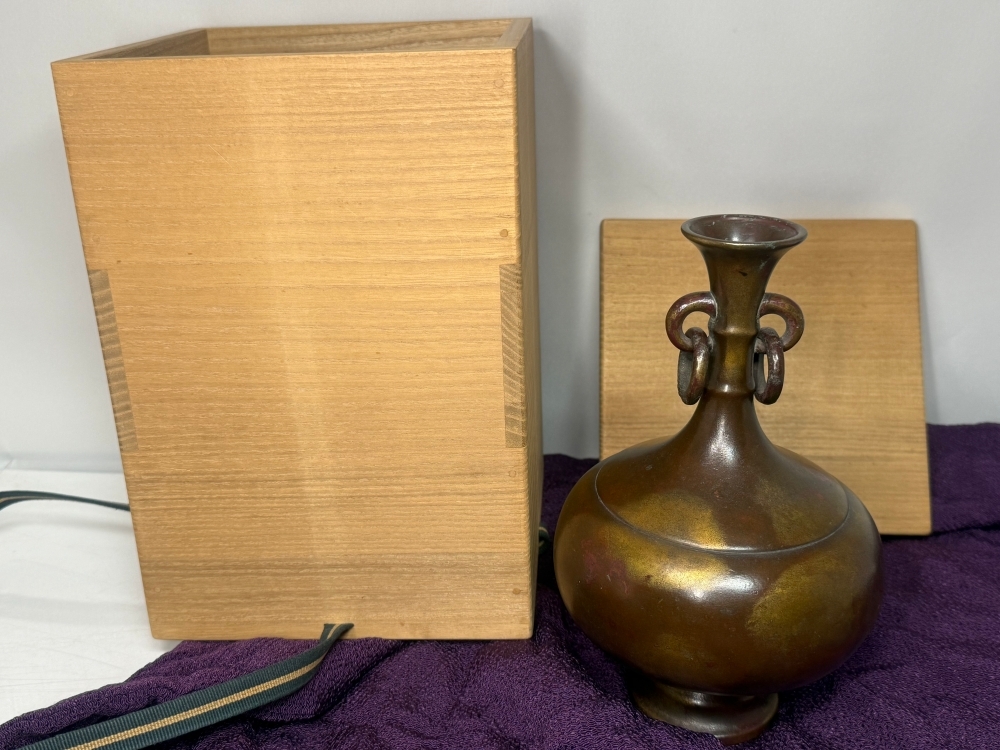 - 銅製 レトロ 双耳 在銘不明 花入 USED品