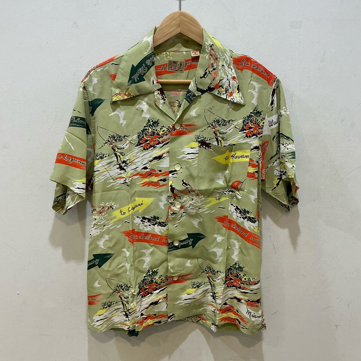 - sunsurf サンサーフ East Wind Aloha Shirt アロハシャツ レーヨン オープンカラー アメカジ 総柄 グリーン Sサイズ 71480