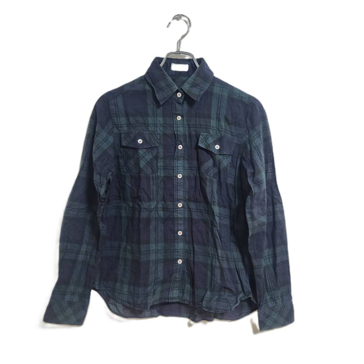 - 長袖 チェックシャツ 綿 ネイビー系 M カジュアル 薄手 上品 おでかけ 通学