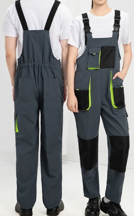 - オーバーオール 切り替え サロペット メンズ 前開なし つなぎ オールインワン ワークパン 男女作業服 緑灰/2XL