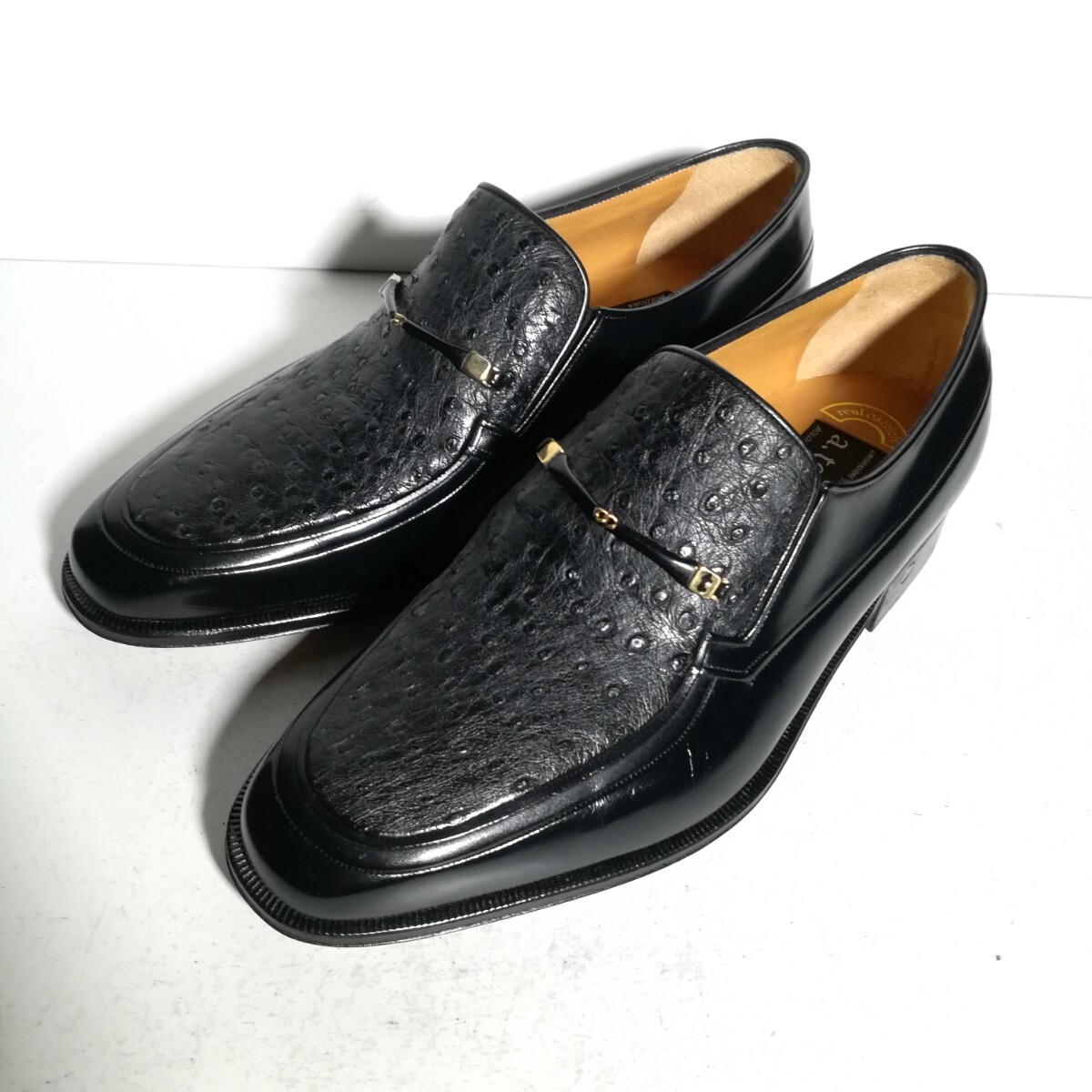 > c0952 【新品同様・試着程度】 ★ア・テストーニ a.testoni★ オーストリッチ スリッポン ローファー 6 1/2H 25.0~25.5cm程度 黒 革靴