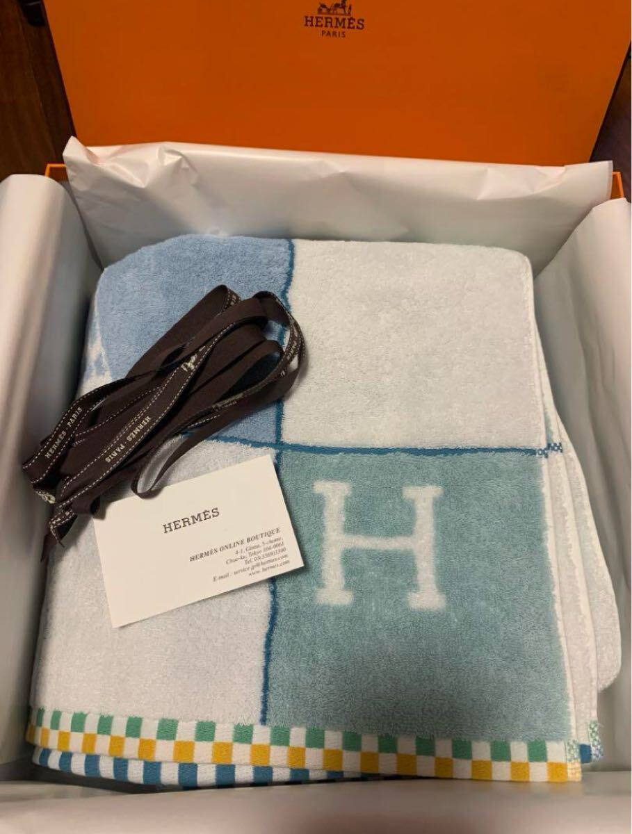 - エルメス バスタオル アニモー・ナッテ 馬柄 ブルーホワイト 新品未使用