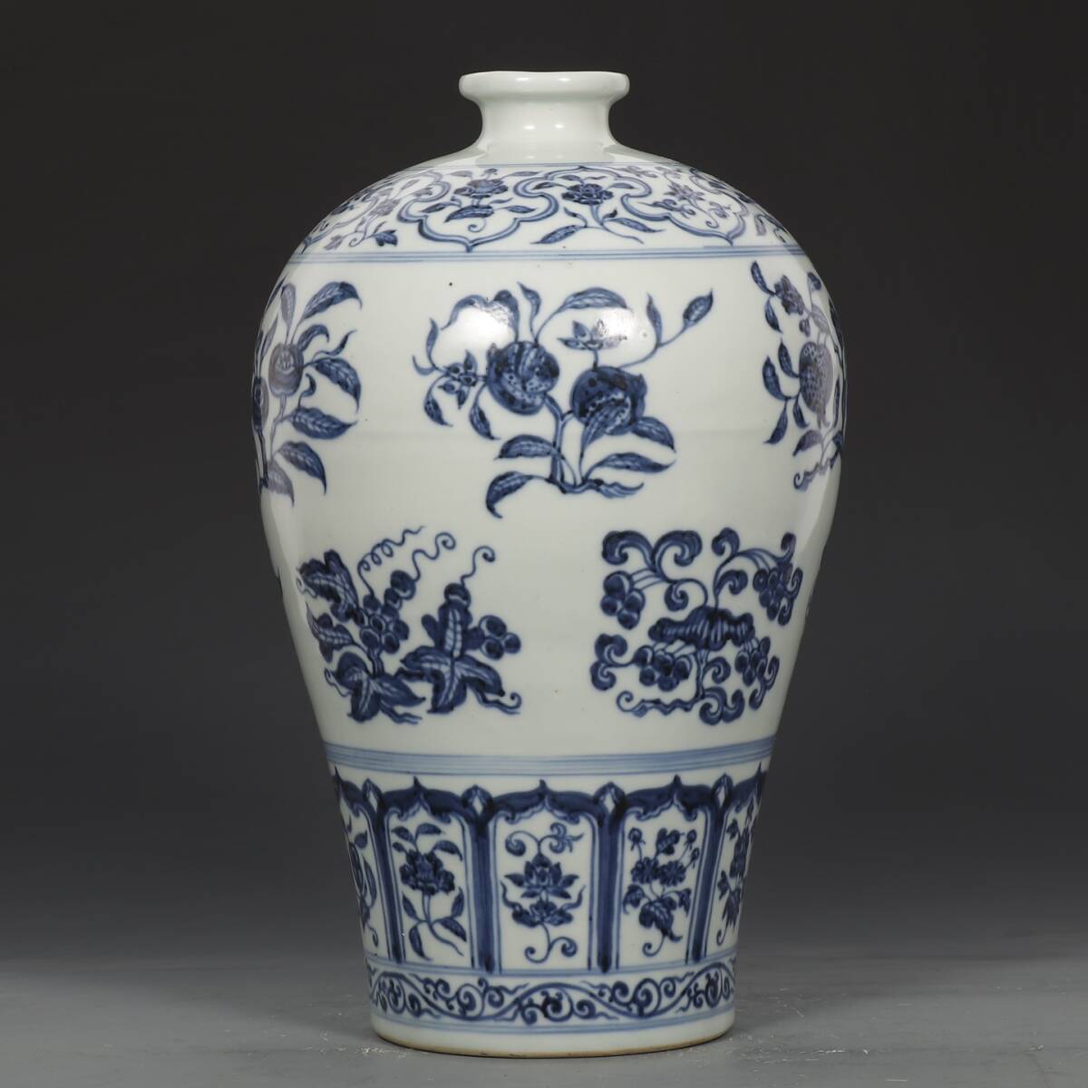 > 明 永樂青花三果紋大梅瓶 高さ37㎝ 口径6.5㎝ 胴径22.5㎝ 唐物 箱付 陶磁器 古美術 RG1098