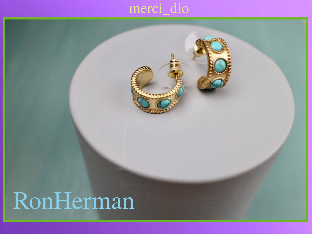 > ロンハーマン RonHerman マットゴールド ターコイズストーン ビーズパーツ スタッドピアス スモールフープ 新品 未使用 シップス wai