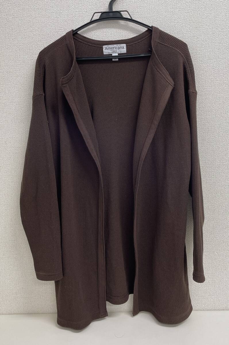 - 【 Americana アメリカーナ★RISE FROM THE 30 コットンワッフル ロングカーディガン】ブラウン/レディース/ボタンレス/A75-229