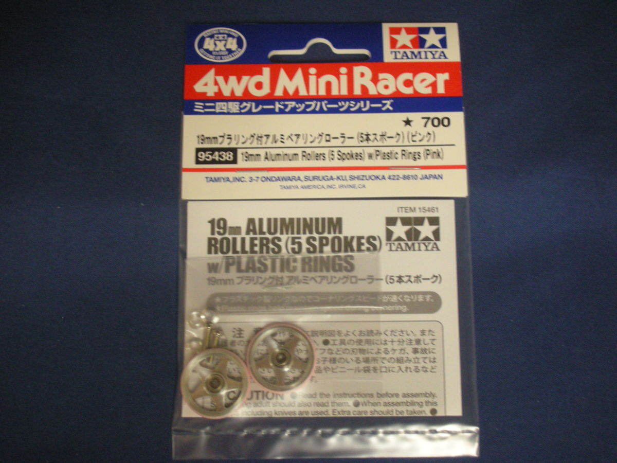 【グレードアップパーツ】19mmプラリング付アルミベアリングローラー(5本スポーク)(ピンク)新品未使用未開封です。>