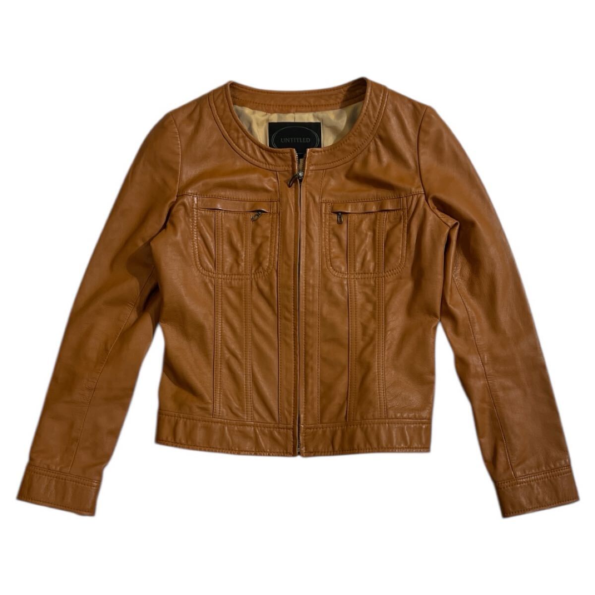 - ■ UNTITLED アンタイトル ■ 上質 本革 羊革 シープスキン ノーカラー ライダース デザイン レザー ジャケット ブラウン 2