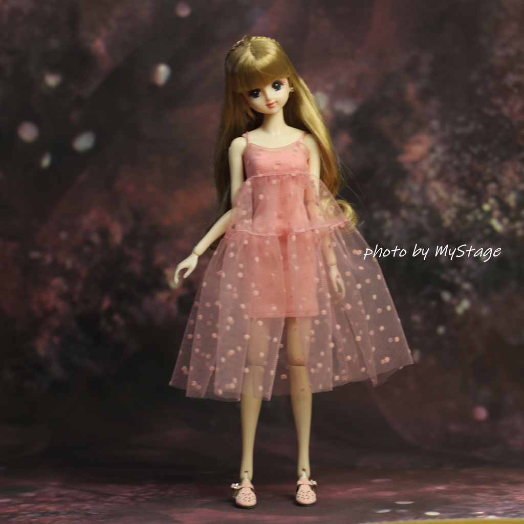 - 人形服msdr-254-4857桃色チュールキャミワンピース、チューブドレス(momokoジェニー)