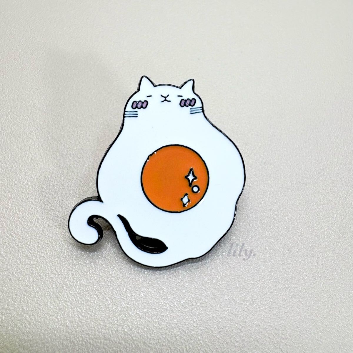 - 【ピンバッジ】目玉焼きになった白猫さん にゃんこ かわいい 癒し