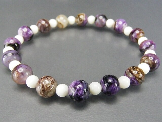 - 訳有天然石チャロアイト約7mm強ホワイトサンゴ4mm強ブレスレットプライム