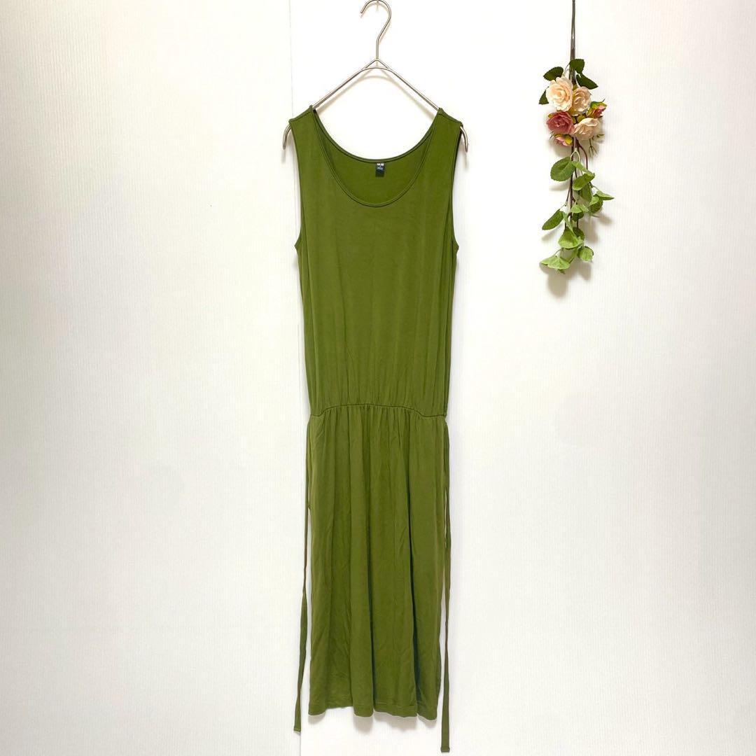 - 【UNIQLO】ユニクロ ノースリーブプリーツワンピース グリーン (S)