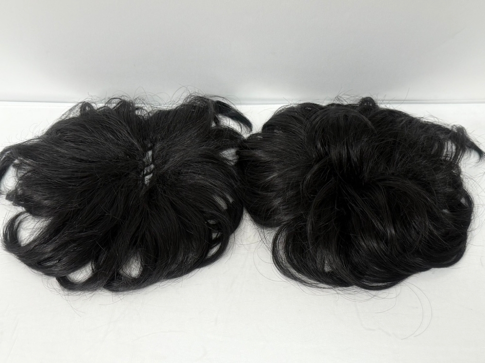 - 女性用ウィッグ 人毛 ブラック 2セット 20cm USED美品