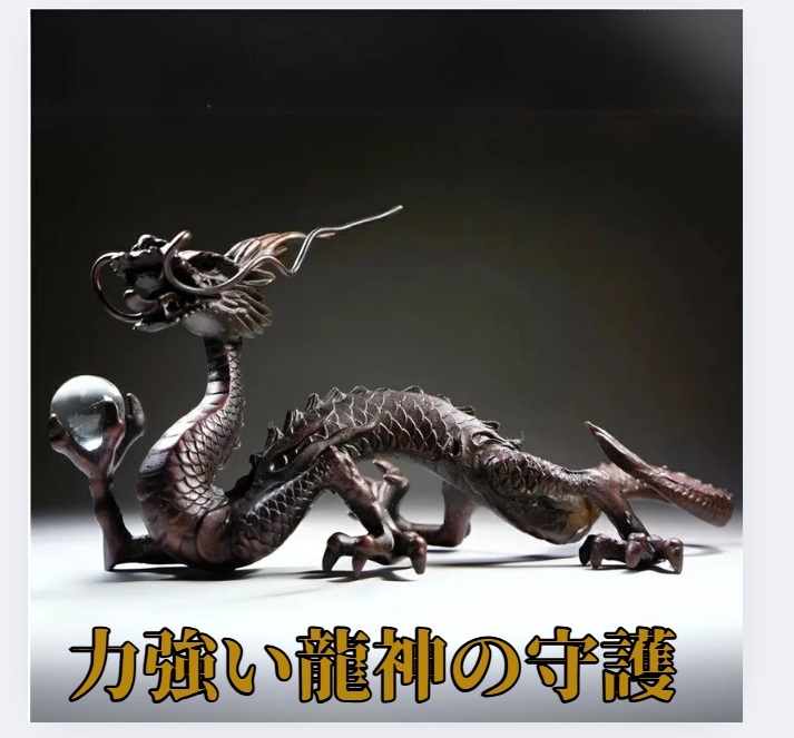 - 【力強い龍神の守護】龍神文高彫置物 銅製 日本製 開運 風水置物 財運アップ 装飾品 厄除け 魔除けインテリア アート 人気 おすすめ