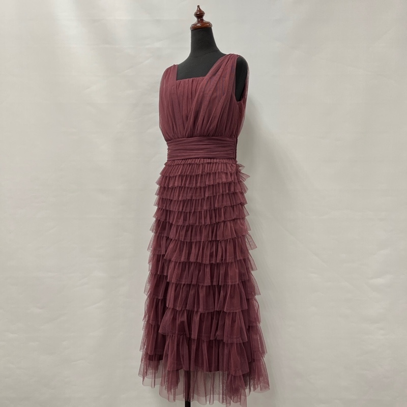 - STRAWBERRY-FIELDS/ストロベリーフィールズ/新品タグ付き/エトワールドレス/ボルドー/ティアード調チュールドレスワンピース/サイズ2