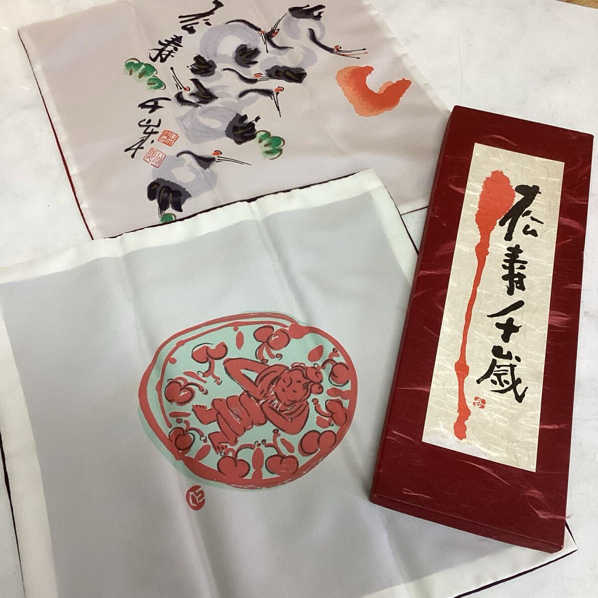 - 松寿千歳 清水公照作 ふくさ 二枚セット 冠婚葬祭 鶴絵 朱色 紫色 (ぬ52)