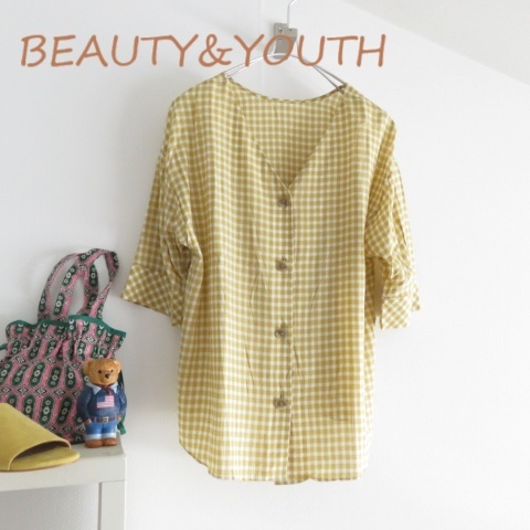 - 送料込 匿名配送 BEAUTY&YOUTH ビューティアンドユース 羽織り ギンガムチェックシャツ 半袖 UNITED ARROWS